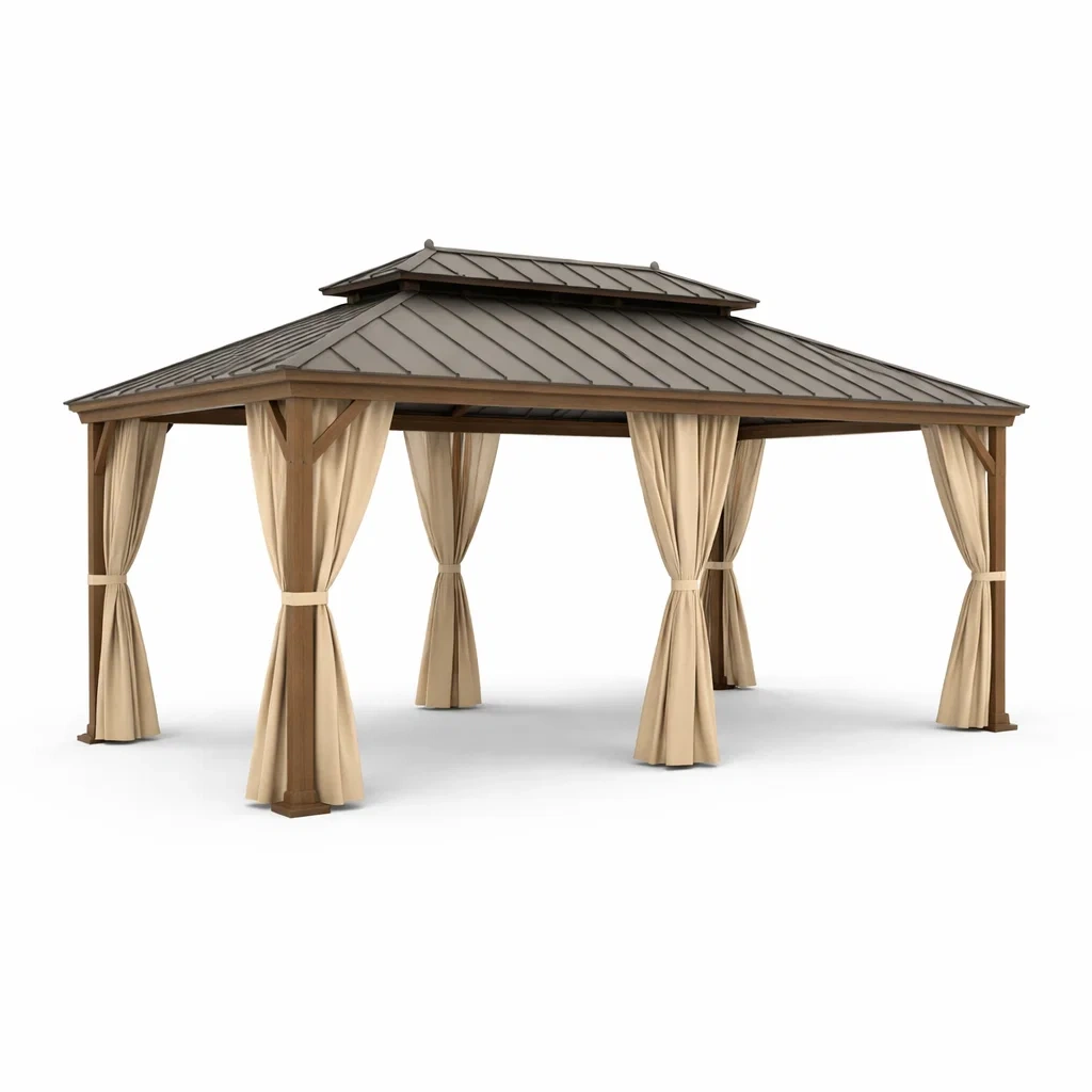 Materiale: Struttura in legno, tetto in metallo, tende in poliestere